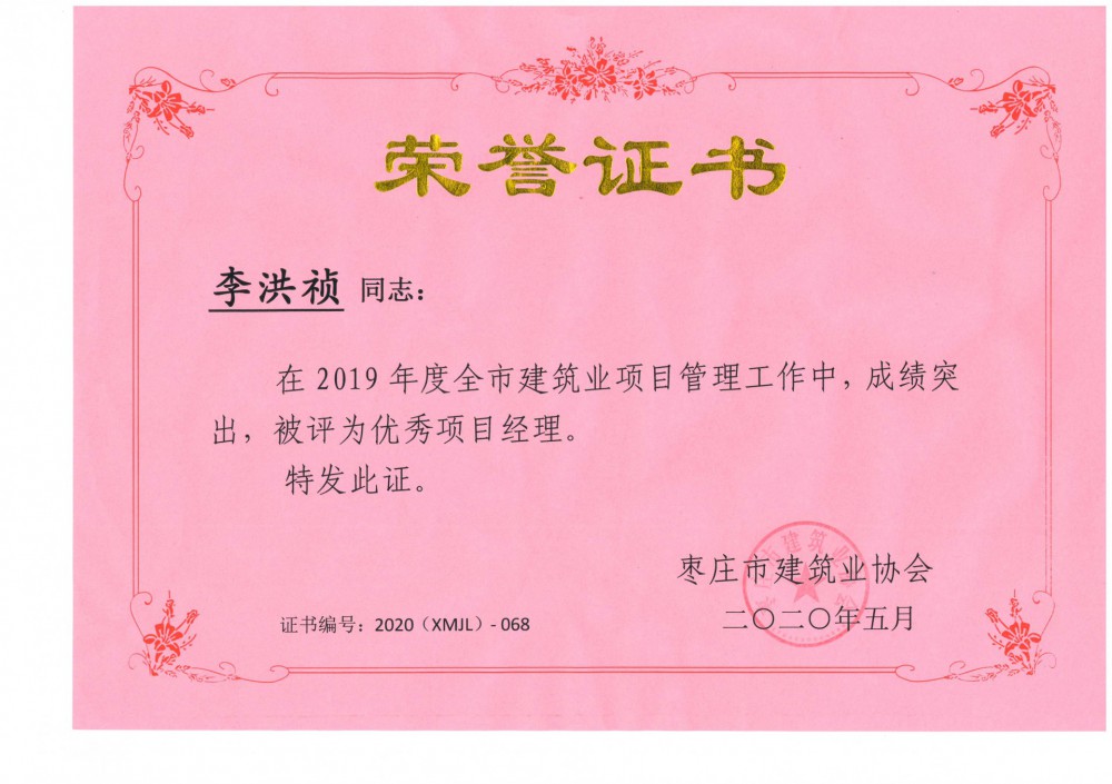 李洪禎-2019年度市級優(yōu)秀施工企業(yè)及項目經理